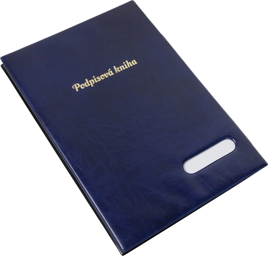 An elegant blue signature book keeps your documents always organized and secure. Thanks to its glossy finish, flexible cloth spine, and 14 divider sheets, it offers reliable protection and easy organization.