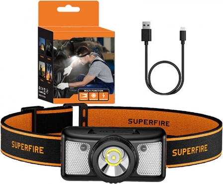 The Superfire HL91-X headlamp offers variable lighting modes, including high, medium, low, strobe, and signal. With two light sources – white and red light – you can easily adjust the intensity and type of lighting as needed. The red light and flashing strobe are particularly useful in emergencies, as they increase your visibility and safety.