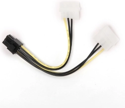 Practical adapter cable for easy component power – converts two Molex connectors to a 6-pin PCIe for a graphics card or powering a BTX motherboard. Ideal when the PSU lacks PCIe power leads.