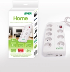The HOME surge-protected power strip with 8 sockets and full grounding provides reliable surge protection for audio-video devices, terrestrial TV and data lines. Thanks to child safety shutters, protection of all power lines, and protection for TV, LAN and telephone lines, it ensures safe operation. A practical 2 m cable and noise filtering for cleaner power.