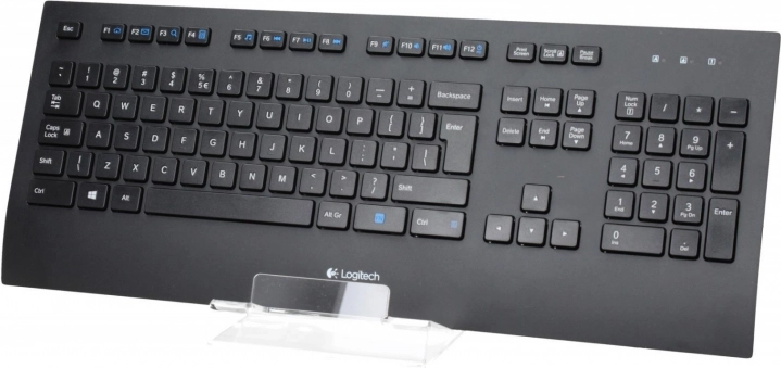 For longer sessions you’ll appreciate the wide wrist rest and adjustable feet for an optimal tilt. A handy LED notification center shows Caps/Num/Scroll Lock. Connection is instant—USB plug & play works without installation, and optional functions can be added via LOGITECH SetPoint software.