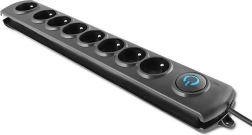 Control is highly convenient: the illuminated Quick Switch foot switch clearly shows when power is on and lets you turn everything off with a single press. The sleek black look suits modern interiors, and smart cable management allows you to wind excess cable around the body of the strip. There is also an option for mounting to furniture or a wall for clean and safe cable management.