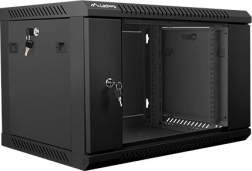 Wall-mounted server cabinet 19'' 6U 600x450mm black with glass doors