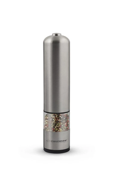 Our pepper and salt grinder makes everyday cooking easier. With the press of a button, it grinds spices to the desired coarseness in seconds. The grinder is made of high-quality stainless steel.
