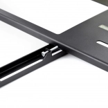 The mount is designed for secure and aesthetic wall mounting of TVs and monitors. Thanks to the extra slim profile, it keeps the screen very close to the wall, enhancing a modern interior look and saving space. The integrated level simplifies installation, and side alignment after attaching to the wall plate lets you fine-tune the screen position.