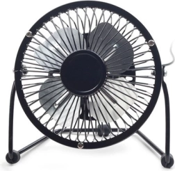 Enjoy refreshing airflow with this practical USB fan with a 4" diameter. Thanks to its compact size, it fits any desk, while the all-metal grille and frame provide long-lasting durability. Simply plug it into a laptop, power bank, or USB adapter and you have reliable cooling at your fingertips.