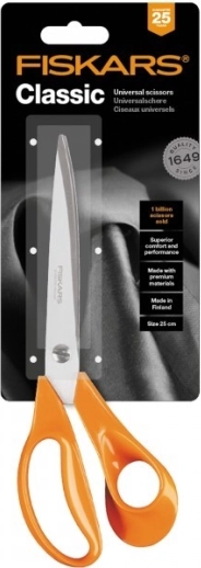 Tailor's Scissors Fiskars are an ideal choice for both home and professional use. Long stainless steel blades ensure precise and straight cuts even through thick fabrics.