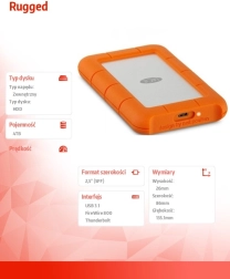 The external drive LaCie Rugged USB-C 4TB is designed for those seeking durable high-capacity storage. Its compact design with dimensions of 86 mm x 135.1 mm x 26 mm and a weight of just 400 g allows easy portability. With a capacity of 4 TB, you'll have plenty of space for all your files, including photos, videos and documents.