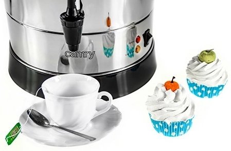 The CR 1259 hot water dispenser made of stainless steel allows you to heat water and keep it at the desired temperature. It is indispensable during coffee breaks at conferences as well as at various business, scientific, and social events. Thanks to its mobility, it is ideal for event preparation. The Camry water boiler is easy and convenient to use and also ensures safety in operation (cool-touch handles and spout).