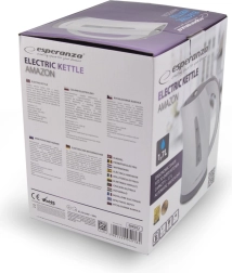 The cordless ESPERANZA Amazon electric kettle with a capacity of 1.7 L combines modern design and convenience. It offers a 360° swivel base, a stainless steel heating plate, and an ergonomic handle for safe, fast boiling.