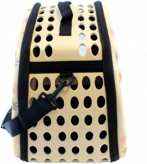 A practical XXL carrier bag for small dogs, cats, or rabbits offering a sturdy structure, excellent ventilation, and comfortable carrying thanks to a handle and an adjustable shoulder strap. The durable EVA foam and plastic material is easy to clean, the bag features a double zipper on both sides and a removable insert for your pet’s cleanliness and comfort.