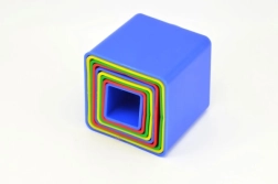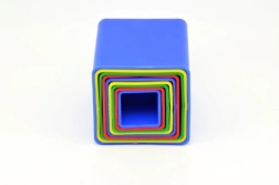 The hollow cubes can be safely stacked on top of each other or fully nested, which saves space and extends the fun.