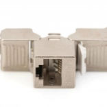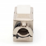 The shielded DIGITUS Keystone CAT 6A module is designed for installation without tools, ensuring easy and quick installation. It meets ISO/IEC 60603-7-51,11801 and AMD2:2010-04 standards. The LSA system is color-coded according to EIA/TIA 568 A&B, ensuring compatibility and reliability. Thanks to its compact design, it is also compatible with design-compatible modular outlets.