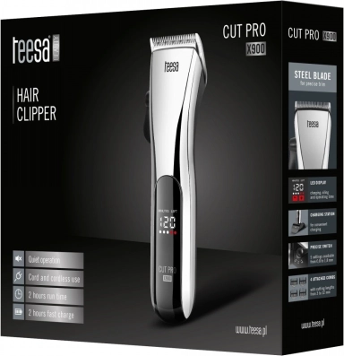 The CUT PRO X900 hair clipper is a reliable helper for both home and professional grooming. Its ergonomic body, sharp blades, and easy-to-read digital display give you full control over length and results. With both mains and battery operation, it adapts to any situation.