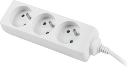 White power extension strip is an ideal solution for connecting up to three electrical devices at once. Thanks to a high-quality 1.5-meter copper cable and child safety, it offers stable and reliable power.