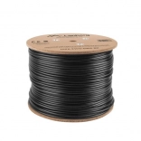 This outdoor Category 6 FTP cable is designed for reliable data transmission in demanding environments. Solid copper conductors (CU 100%) and foil shielding protect the link from interference, ensuring low attenuation and stable throughput up to 250 MHz. The robust PE jacket in black RAL9004 withstands weather and UV exposure.