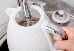 Maximum convenience is ensured by the 360° rotating base with the option to hide excess cord, a water level gauge, and auto shut-off after boiling. You can fill the kettle easily either through the pouring spout or by opening the lid. The mesh filter in the spout effectively captures limescale particles, contributing to cleaner water and a longer appliance lifespan.
