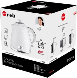 Discover the blend of elegant design and reliable performance. The Eldom NELA kettle in white stands out with its original shape, textured surface for a secure grip, and chrome details that give it a premium look. Thanks to the 2000 W heating system, it boils water in moments for tea, coffee, and quick cooking.