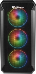 GENESIS Irid 503 ARGB V2 is a well‑designed micro tower case for Micro‑ATX and Mini‑ITX boards. The perforated front panel and four pre‑installed 120 mm ARGB fans ensure excellent airflow, while the tempered glass side lets your components and lighting shine. The integrated ARGB controller (5V 3‑pin) allows you to tune effects independently or via a compatible motherboard; with the 4‑pin PWM connector you can also control fan speeds based on load.