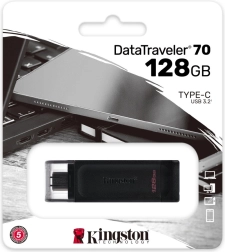 A lightweight and portable USB‑C flash drive, the Kingston DataTraveler 70 offers 128 GB of capacity and a USB 3.2 Gen 1 interface. Ideal for laptops, tablets, and phones with USB‑C. It delivers fast data transfers, reliable backup, and a 5‑year warranty with free support.