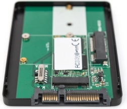 The universal DIGITUS adapter converts your M.2 SSD (B‑Key/B+M‑Key) or mSATA into a standard 2.5" SATA drive with a SATA III 6 Gbit/s interface. It offers fast read speeds up to 520 MB/s, a sealed aluminum enclosure for better cooling and protection, support for DEVSLP, and easy setup using a DIP switch. Suitable for most 7 mm‑height laptops and desktop PCs, and allows booting from SSD.