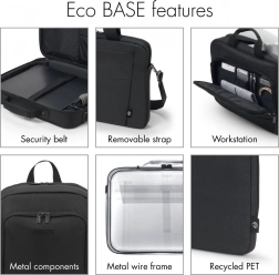 The Eco Slim Case BASE bag is designed for everyday use, combining an aesthetic look with functionality. It is made from recycled PET material, making it an environmentally friendly choice. Thanks to the use of up to 19 recycled PET bottles, this product offers not only a sustainable alternative but also long-lasting durability with a lifetime warranty.
