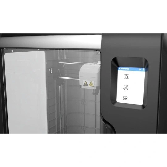 The enclosed print chamber with interior lighting ensures stable conditions and safer operation. The integrated camera lets you monitor printing remotely. The extruder reaches 200 °C in 60 seconds and up to 240 °C, accelerating project startup and broadening usage possibilities.