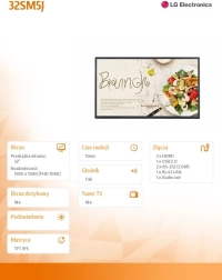 The LG 32" 32SM5J monitor offers excellent image quality and wide viewing angles thanks to its modern IPS panel. It is ideal for commercial and professional applications where continuous operation is required. The monitor is equipped with webOS 6.0 technology, allowing for easy management and usability.