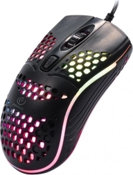 Discover the benefits of the wired gaming mouse Ghost, designed for maximum performance and comfort while playing. It is equipped with the Sunplus 180 sensor for precise movement tracking and RGB lighting, which you can customize to your preferences. The mouse's design ensures lightness and strength, allowing hours of play without feeling fatigued.
