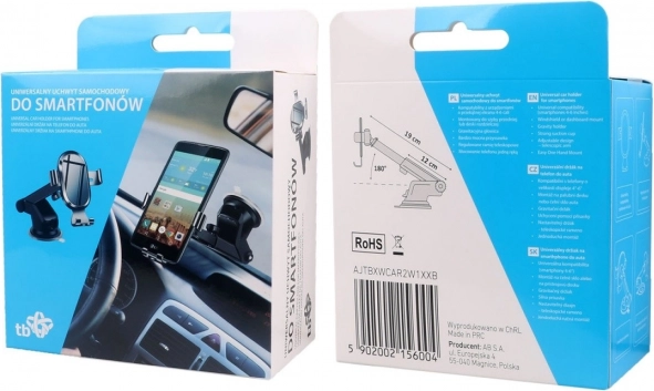 The holder is compatible with phones with a screen size from 4 to 6 inches and offers various mounting options - to glass, dashboard, or vent grille.