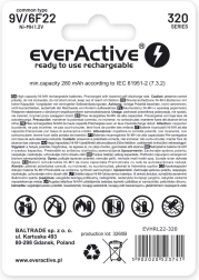 EverActive Battery 9V 320 mAh Ni-MH is the ideal choice for professional use. With the "ready to use" technology, it is a great replacement solution for alkaline batteries.