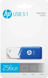 The HP x755w USB flash drive with 256 GB capacity is an ideal choice for anyone who needs their data at hand. The USB 3.1 interface delivers significantly higher speeds than older standards, so copying large files takes moments. The stylish blue-and-white design with a cap protects the connector, and the loop allows secure attachment to a keychain.