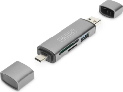 3-port Card Reader USB Type C / USB 3.0 SuperSpeed SD Micro SD Digitus Gray