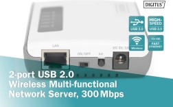 With the Digitus server, you can transform any compatible USB device into a network device available within the local network. The multifunctional server also allows wireless connection and management of devices via a friendly web interface. Perfect as a print server for multifunctional printers or NAS, allowing access to data over the network or the internet.