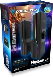 Cobra Pro Aragor 2.0 is a two-way stereo speaker set with an RMS power of 8W. Thanks to its flexibility, it can be configured as a pair of separate 2.0 speakers or merged into a unified gaming soundbar. This system ensures faithful sound reproduction, pleasing not only gamers but also music and movie lovers.
