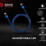 The blue-black braided cable provides increased resistance to wear and a stylish appearance.