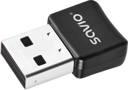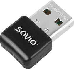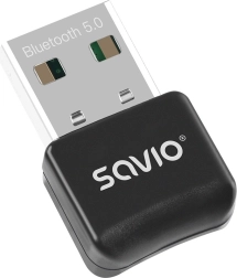 The compact SAVIO USB adapter with Bluetooth 5.0 technology enables fast and stable wireless connectivity for your laptop or PC. It offers transfer speeds up to 3 Mb/s, range up to 10 m, dual‑mode, and low power consumption (Class 2). It is backward compatible with Bluetooth 4.x/3.x/2.x, includes a status LED, and supports Windows 7/8/10/11.