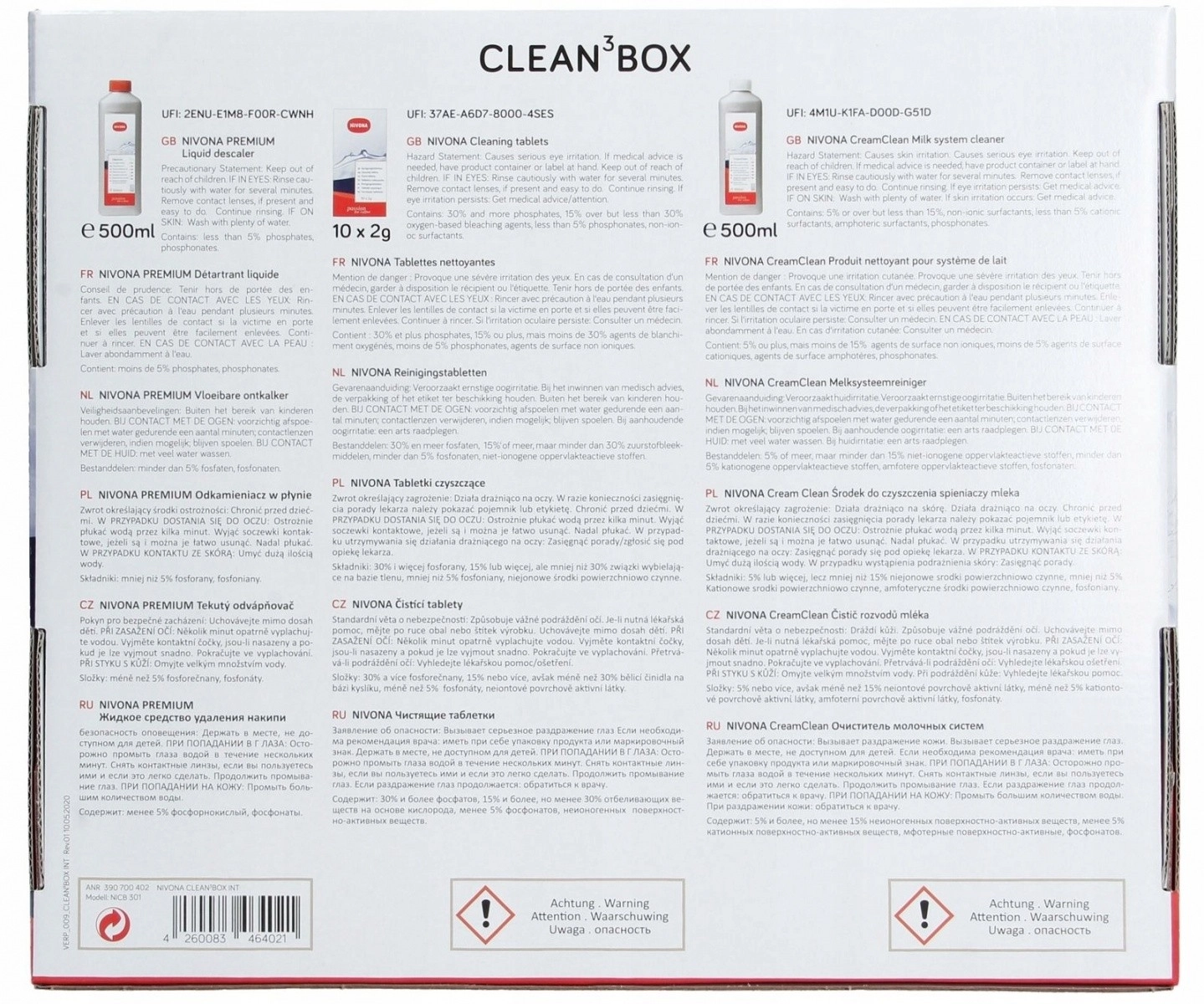 The Clean3Box set is the ideal solution for keeping your NIVONA coffee machine in perfect condition. This set offers: