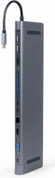 USB Type-C 9-in-1 adapter with multiple ports (USB hub + HDMI + VGA + PD + card reader + LAN + 3.5 mm audio), gray