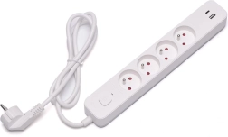 The surge protective extension strip is designed for safe and convenient use. It features four grounded sockets and two USB ports supporting fast charging technologies Quick Charge 3.0 and Power Delivery 3.0.