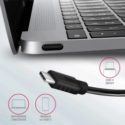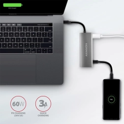 The compact AXAGON USB-C hub adds five ports to your notebook or phone: 2x USB-A, 2x USB-C, and HDMI up to 4K. Thanks to the USB 3.2 Gen 2 (10 Gb/s) interface, it transfers data twice as fast as common first‑generation hubs. It supports Power Delivery for passthrough laptop charging, has an aluminum body for better cooling, and a 13 cm USB-C cable for convenient connection.