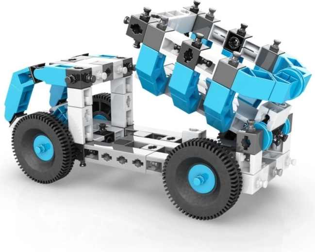 Discover the versatile ENGINO construction set with up to 20 models in one practical box. Designed for children aged 7+, it supports creativity, STEM learning, and fine motor skills. Parts in blue, white, black, and gray connect easily and can be rebuilt again and again. Includes an interactive kidCAD app for 3D viewing, rotation, and model adjustments. Stored in a transparent box with lid and handle for easy transport and tidy organization.