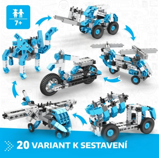 The Engino Box 20 Models set brings children aged 7+ hours of fun while exploring construction and engineering principles. From a single kit you can build cars, motorcycles, airplanes, helicopters, robots, and animals—all with realistic details and functions for imaginative play. The parts are sturdy, lightweight, and designed for comfortable assembly.