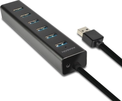 Expand your computer’s connectivity with the elegant aluminum AXAGON hub featuring seven USB ports. Support for USB 3.2 Gen 1 (5 Gb/s) ensures fast data transfer, while USB Battery Charging 1.2 lets you charge phones, tablets, and power banks with up to 2 A on any port. Thanks to generous port spacing, you can easily connect larger devices.