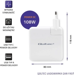 The Qoltec charger GaN FAST 108W represents a revolution in charging technology thanks to the innovative use of GaN semiconductor material. This technology ensures that the charger is not only powerful and fast but also lighter than traditional models.