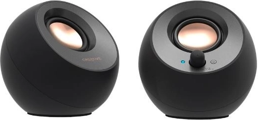 The compact 2.0 speakers CREATIVE Pebble V3 deliver cleaner and louder sound than ever before. They offer single-cable USB‑C connectivity for both power and audio, Bluetooth 5.0 for wireless streaming, Clear Dialog technology for clearer speech, and a gain switch for higher acoustic output. The minimalist design with 45° angled drivers fits perfectly on a work desk or gaming setup.