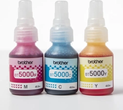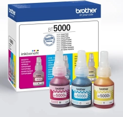 Brother BT5000CLVAL is a set of original bottles with color inks for Brother printers in colors cyan, magenta, and yellow. Each bottle allows printing up to 5000 pages with high quality.