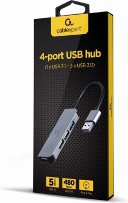 Expand your laptop or PC connectivity with a compact 4-port USB hub with an integrated cable. It offers 3× USB 2.0 for everyday peripherals and 1× USB 3.1 for faster data transfers, all in a durable aluminum body.