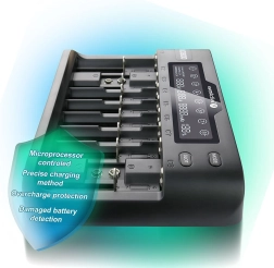 - Supported chemistries: Ni-MH; Li-ion 3.6/3.7 V; Li-HV 3.85 V; LiFePO4