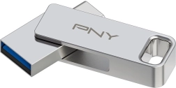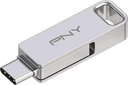The compact and durable PNY Duo Link 256 GB flash drive with a dual USB‑C and USB‑A connector links modern phones, tablets, and computers. It offers read speeds up to 200 MB/s, fast backups on the go, and easy freeing up space on your phone by transferring photos, videos, and documents.